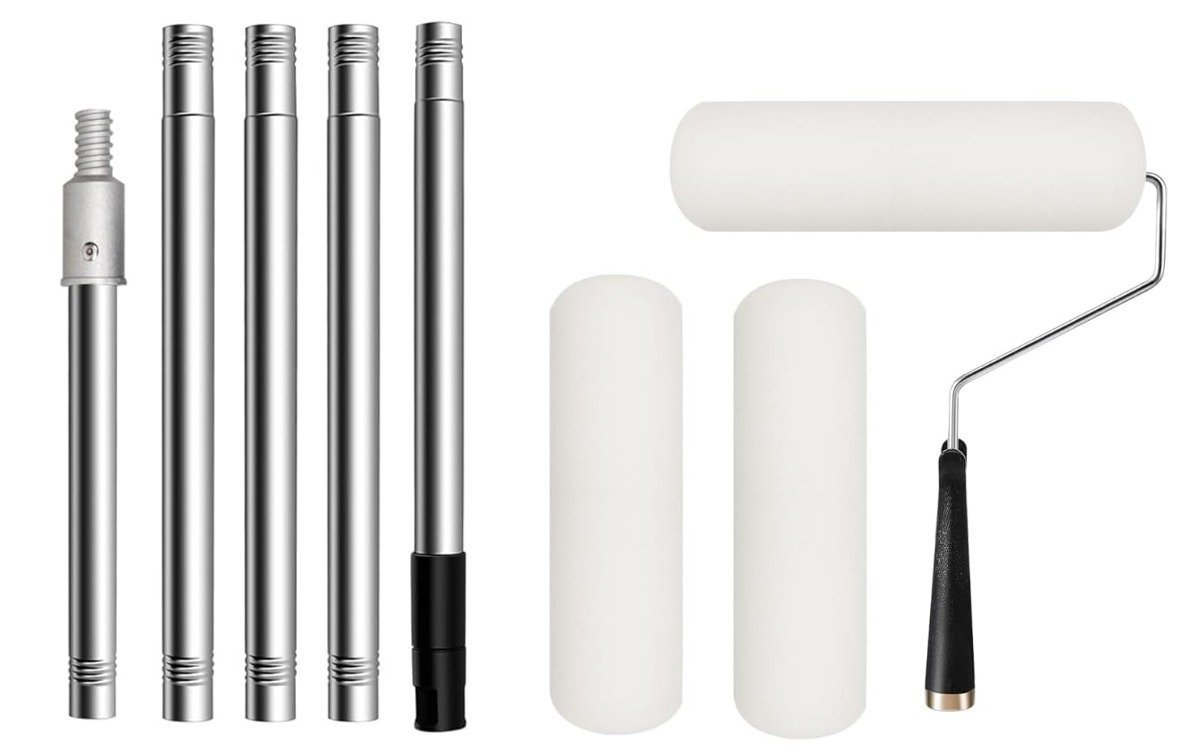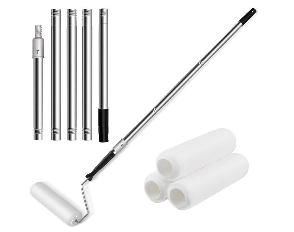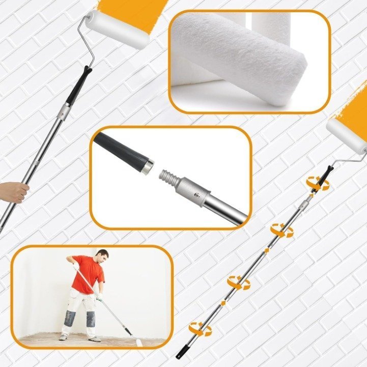 Telescopic Aluminium Alloy Rod Paint Roller Brush Set with 3 Quality Brush Head,6.5Ft Detachable Pole Handle,Multi-Function Long Household Wall Painting Tool, Mural Brush for Walls and Ceiling.